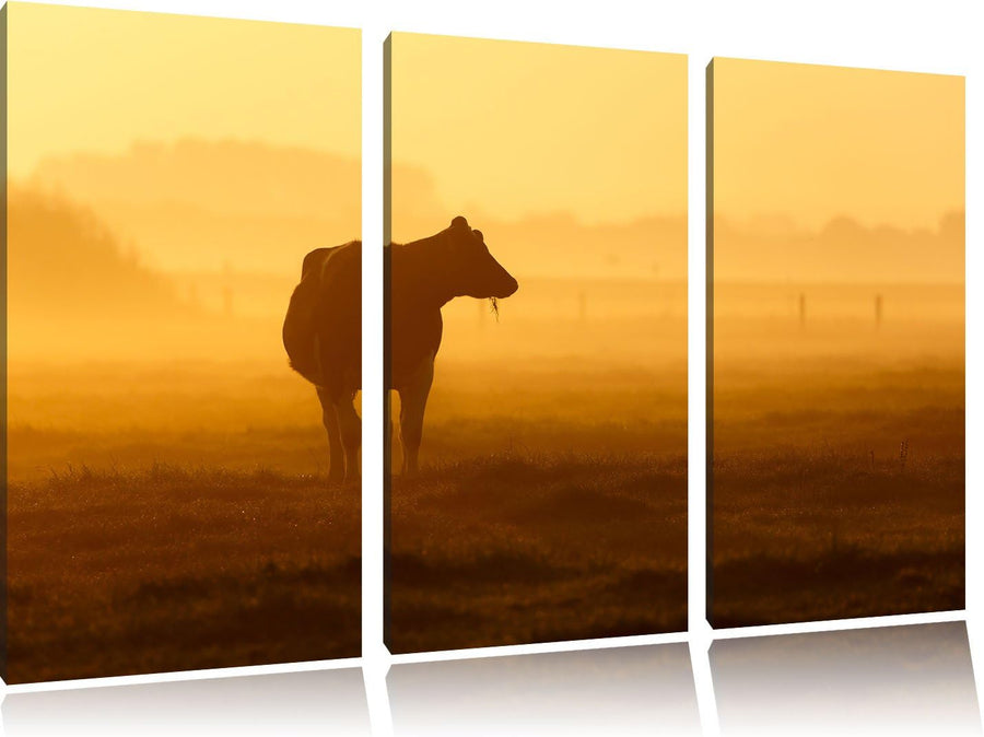 Pixxprint eine fressende Kuh auf der Weide als Leinwandbild/Grösse: 3 Teilig (120x80) / Wandbild/Kun