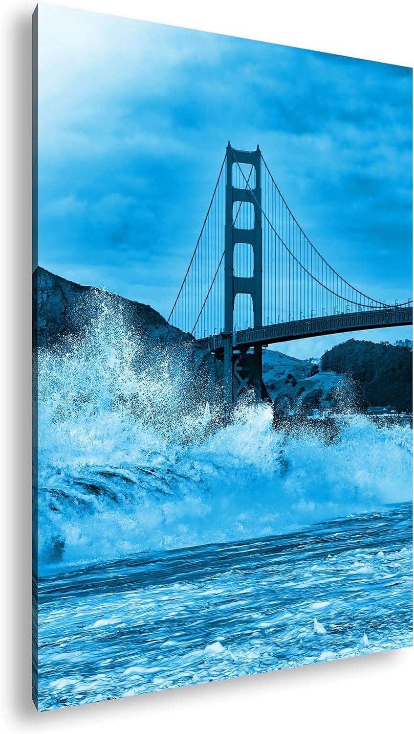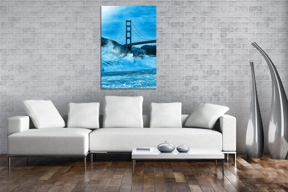 stürmische Wellen an der Golden Gate Bridge Format: 80x60 Effekt: Monocrome Blau als Leinwand, Motiv