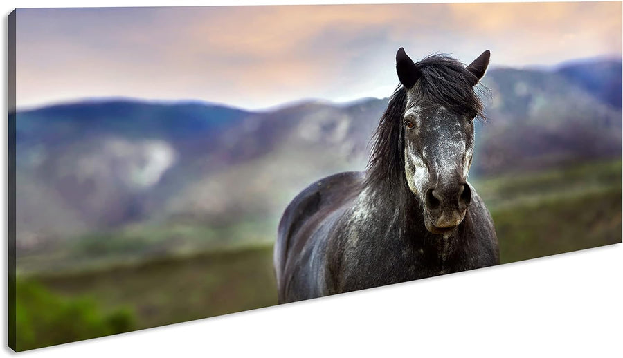 stolzes Pferd Panorama 120x60 cm als Leinwandbild, Motiv fertig gerahmt auf Echtholzrahmen, Hochwert