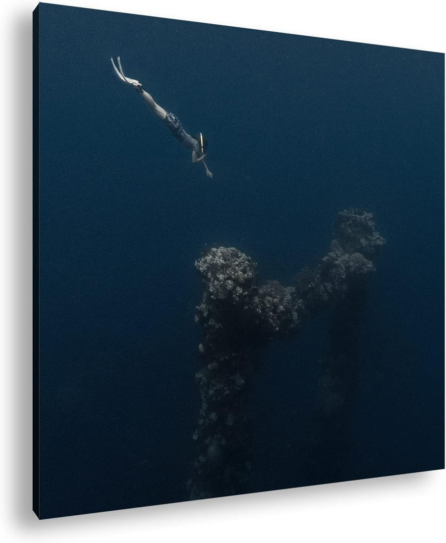 tiefer Tauchgang zum Meeresgrund Format: 60x60 als Leinwandbild, Motiv fertig gerahmt auf Echtholzra