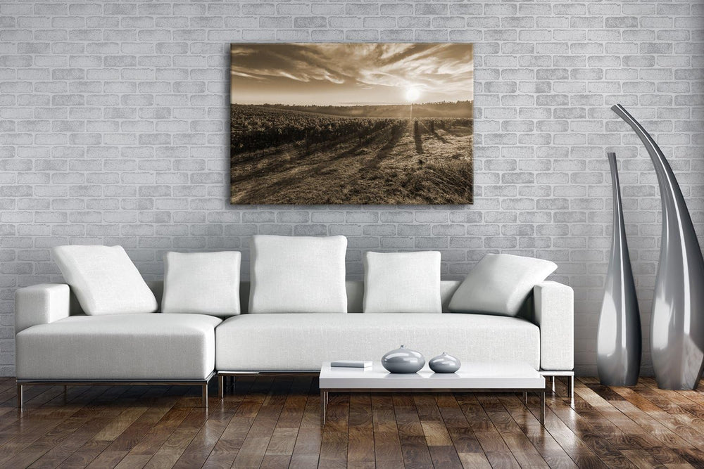 Traubenfeld in der Toskana Format: 60x40 Effekt: Sepia als Leinwandbild, Motiv fertig gerahmt auf Ec