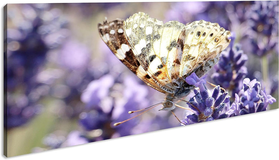 süsser Schmetterling Panorama 80x40 cm als Leinwandbild, Motiv fertig gerahmt auf Echtholzrahmen, Ho