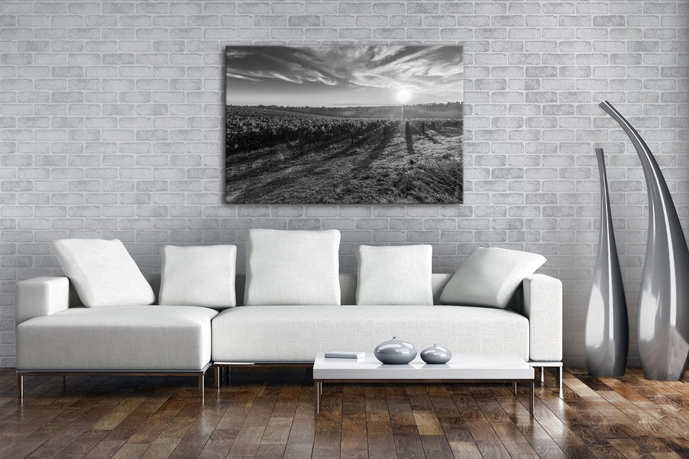 Traubenfeld in der Toskana Effekt: Schwarz/Weiss Format: 60x40 als Leinwandbild, Motiv fertig gerahm