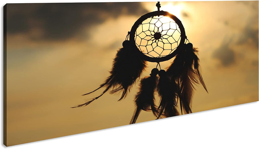 Traumfänger im Wind Panorama 80x40 cm als Leinwandbild, Motiv fertig gerahmt auf Echtholzrahmen, Hoc