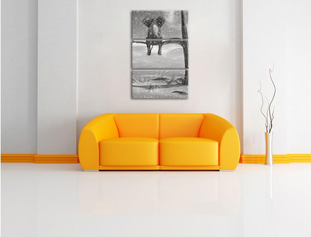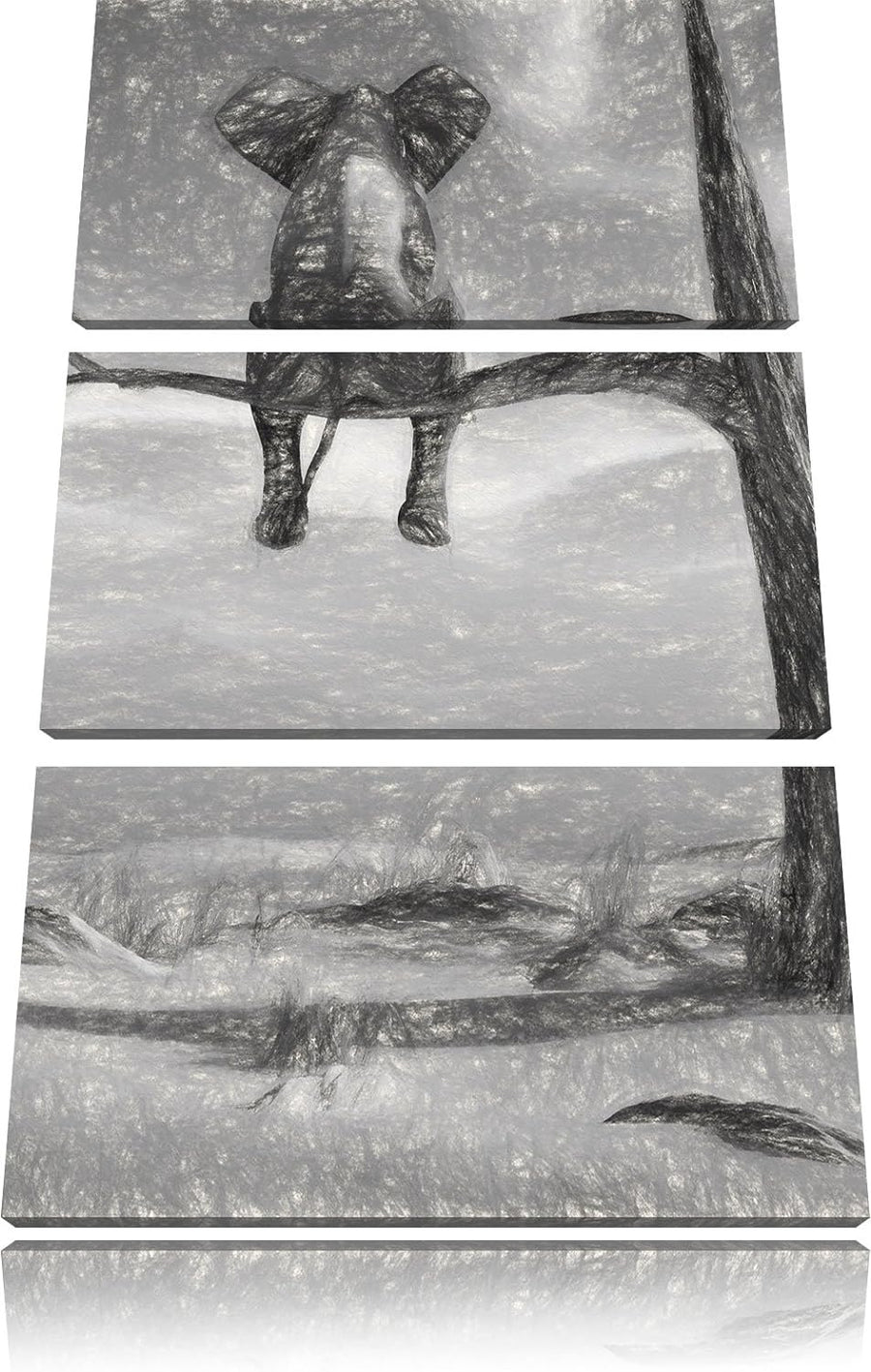 Pixxprint Elefant auf einem AST in der Wüste als Leinwandbild/Grösse: 3 Teilig (120x80) cm/Wandbild/