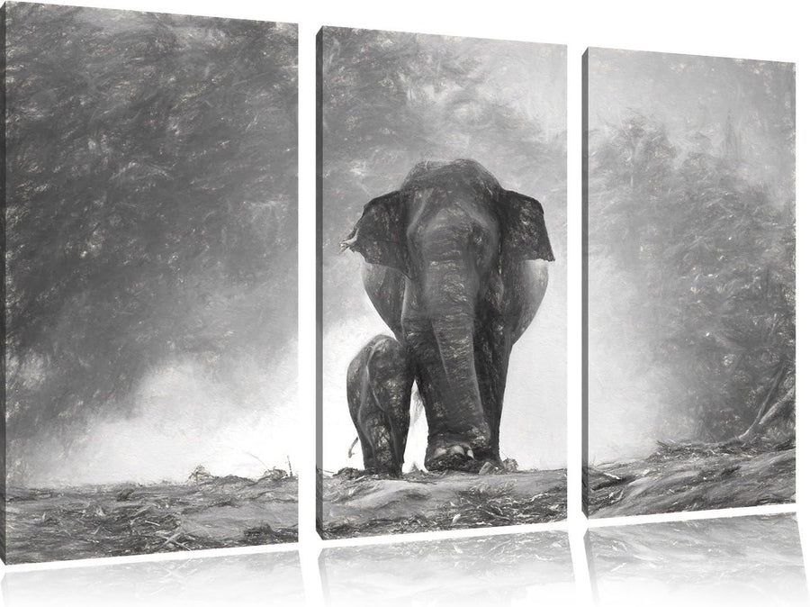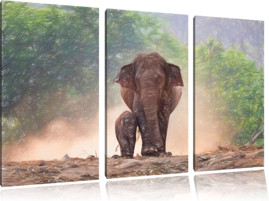 Pixxprint Elefanten Baby Mama als Leinwandbild/Grösse: 3 Teilig (120x80 cm) cm/Wandbild/Kunstdruck/f