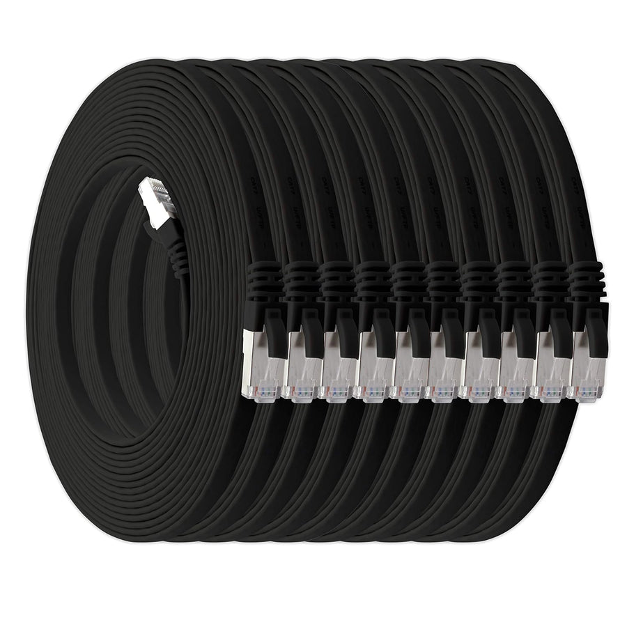 5m - schwarz - 10 Stück Cat7 Flachkabel Netzwerkkabel Cat 7 Rohkabel Gigabit Lan (10Gbit/s) Flachban