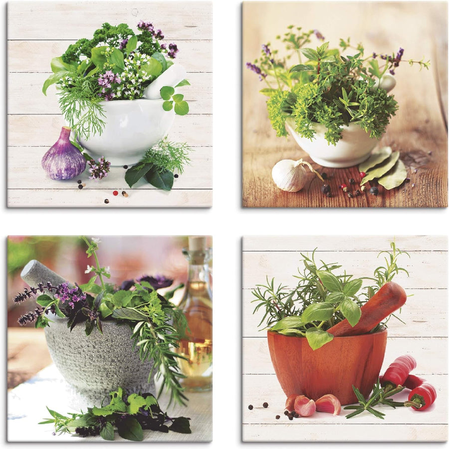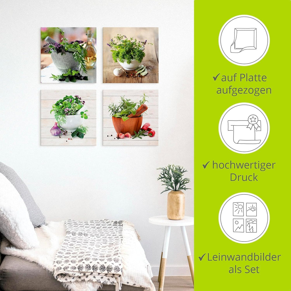ARTLAND Leinwandbilder auf Holz Wandbild Bild Set 4 teilig je 40x40 cm Quadratisch Stillleben Lebens