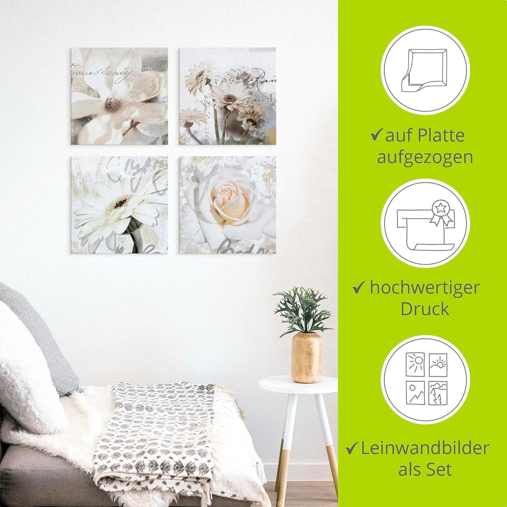 ARTLAND Leinwandbilder auf Holz Wandbild Bild Set 4 teilig je 40x40 cm Quadratisch Natur Blumen Kuns