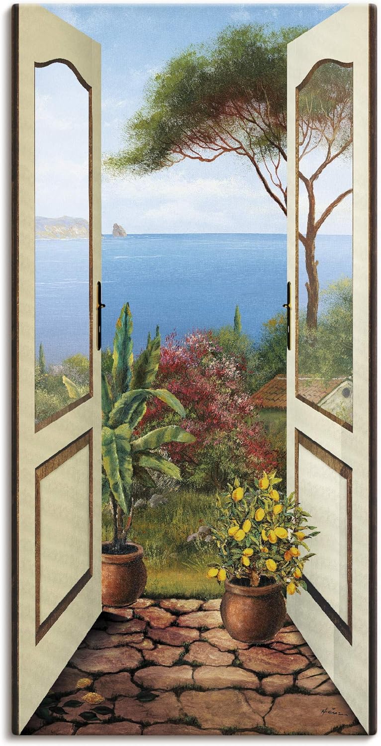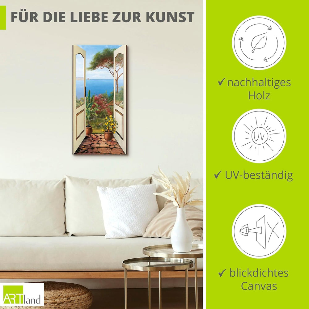 ARTland Leinwandbilder Bild Leinwand Wandbilder 50x100 cm Fensterblick Garten Meer Landschaft Küste