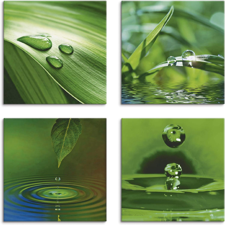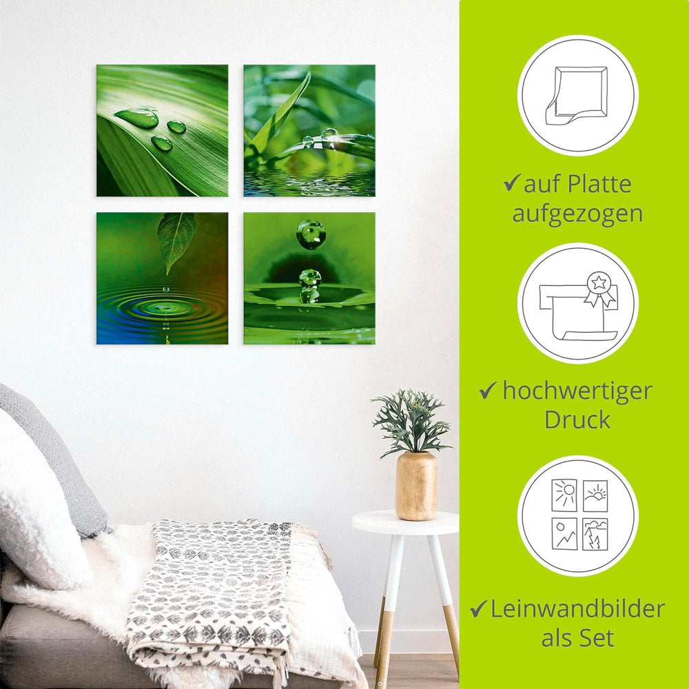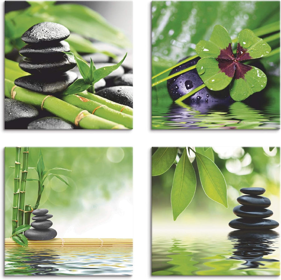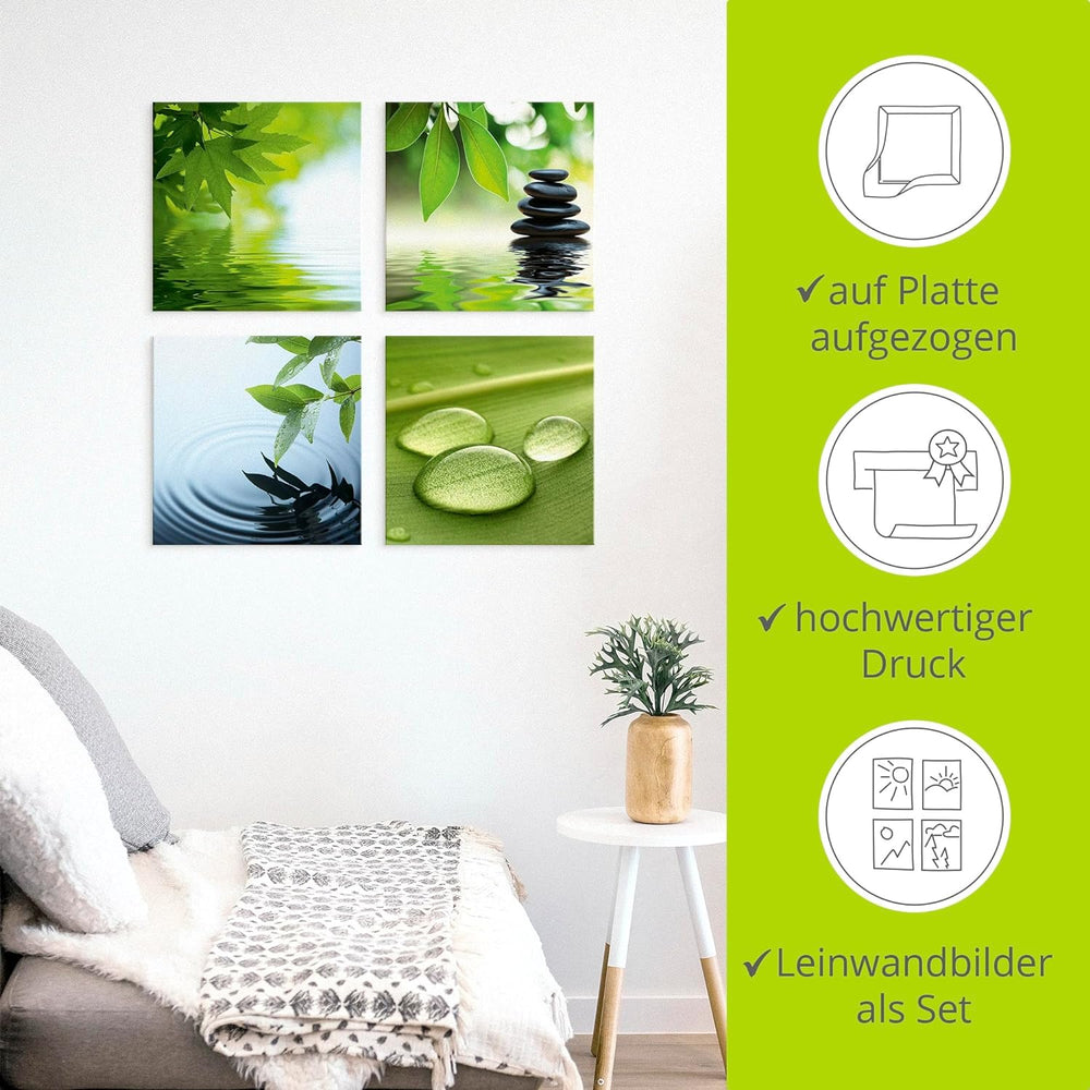 ARTLAND Leinwandbilder auf Holz Wandbild Bild Set 4 teilig je 40x40 cm Quadratisch Wellness Zen Wass