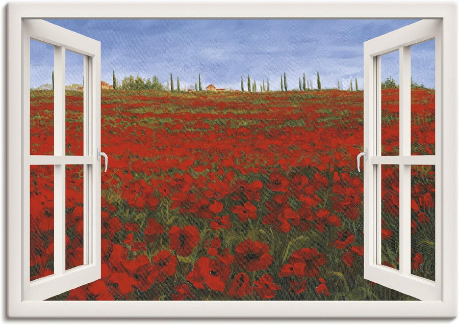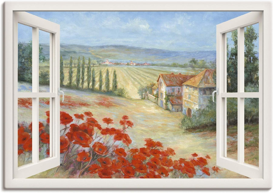 ARTland Leinwandbilder Bild Leinwand Wandbilder 70x50 cm Fensterblick Landschaft Toskana Italien Moh