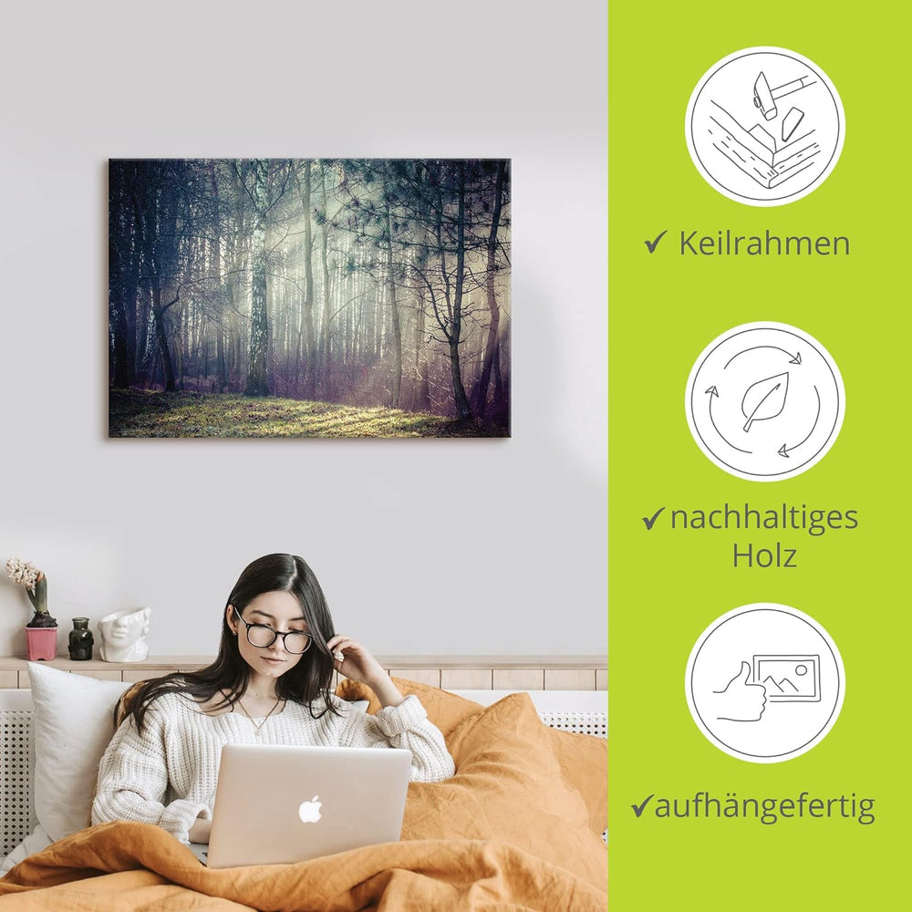 ARTland Leinwandbilder Wandbild Bild auf Leinwand 100x70 cm Querformat Landschaft Wald Natur Bäume S