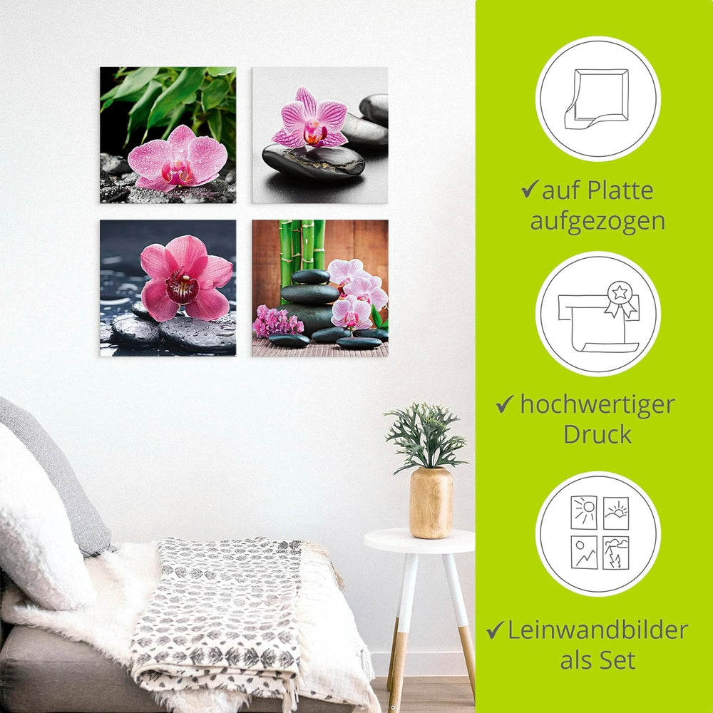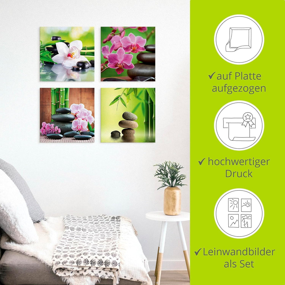 ARTLAND Leinwandbilder auf Holz Wandbild Bild Set 4 teilig je 40x40 cm Quadratisch Wellness Zen Pfla