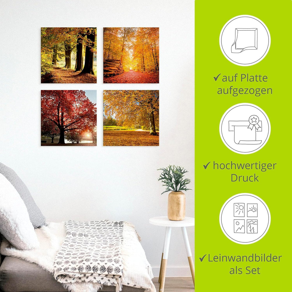 ARTLAND Leinwandbilder auf Holz Wandbild Bild Set 4 teilig je 40x40 cm Quadratisch Natur Bäume Laubb