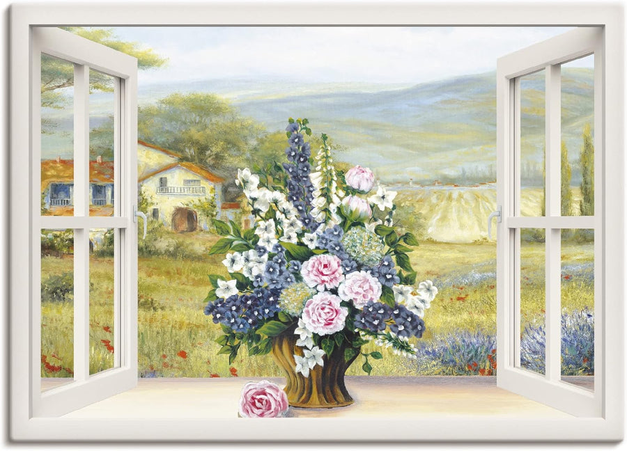 ARTland Leinwandbilder Wandbild Bild auf Leinwand 100x70 cm Landschaften Fensterblick J4WH Blumenbou