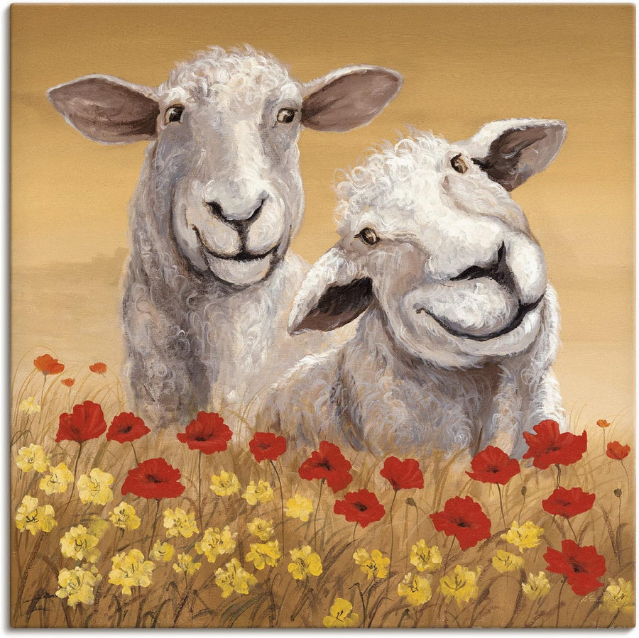 ARTland Leinwandbilder Wandbild Bild auf Leinwand 100 x 100 cm Tiere Haustiere Schaf Malerei Creme A