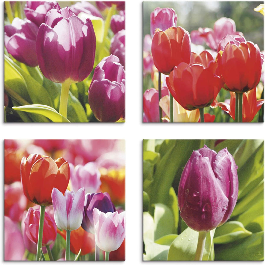 ARTLAND Leinwandbilder auf Holz Wandbild Bild Set 4 teilig je 40x40 cm Quadratisch Natur Blumen Tulp