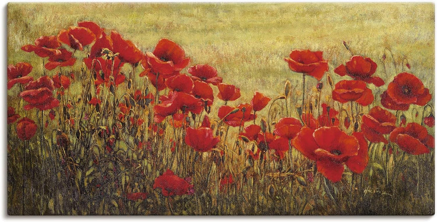 ARTland Leinwandbilder Wandbild Bild auf Leinwand 100 x 50 cm Botanik Blumenwiese Mohnblume Malerei