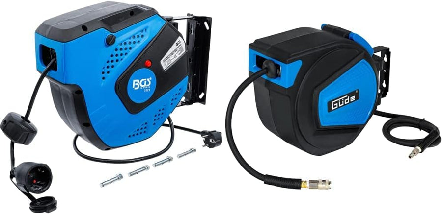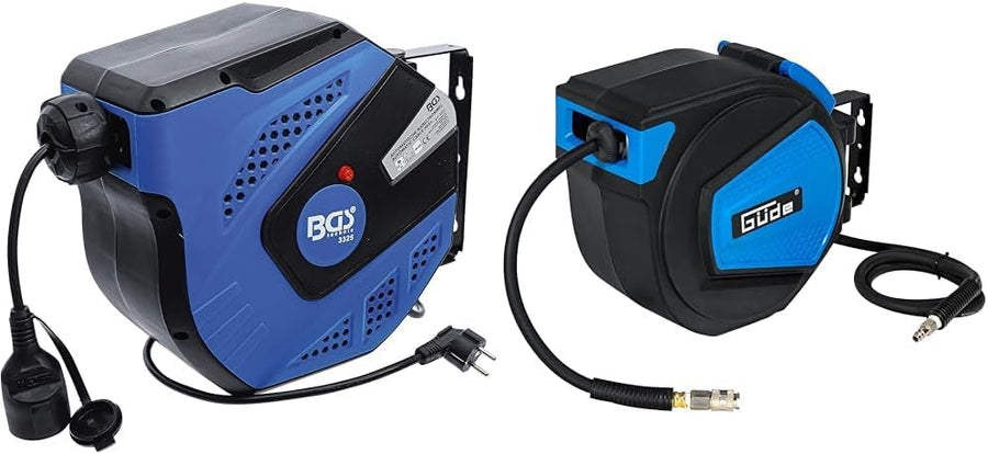 BGS 3325 | Automatische Kabeltrommel | 25 m + 1 m Zuleitung & Güde 2882 Automatik Schlauchtrommel 15