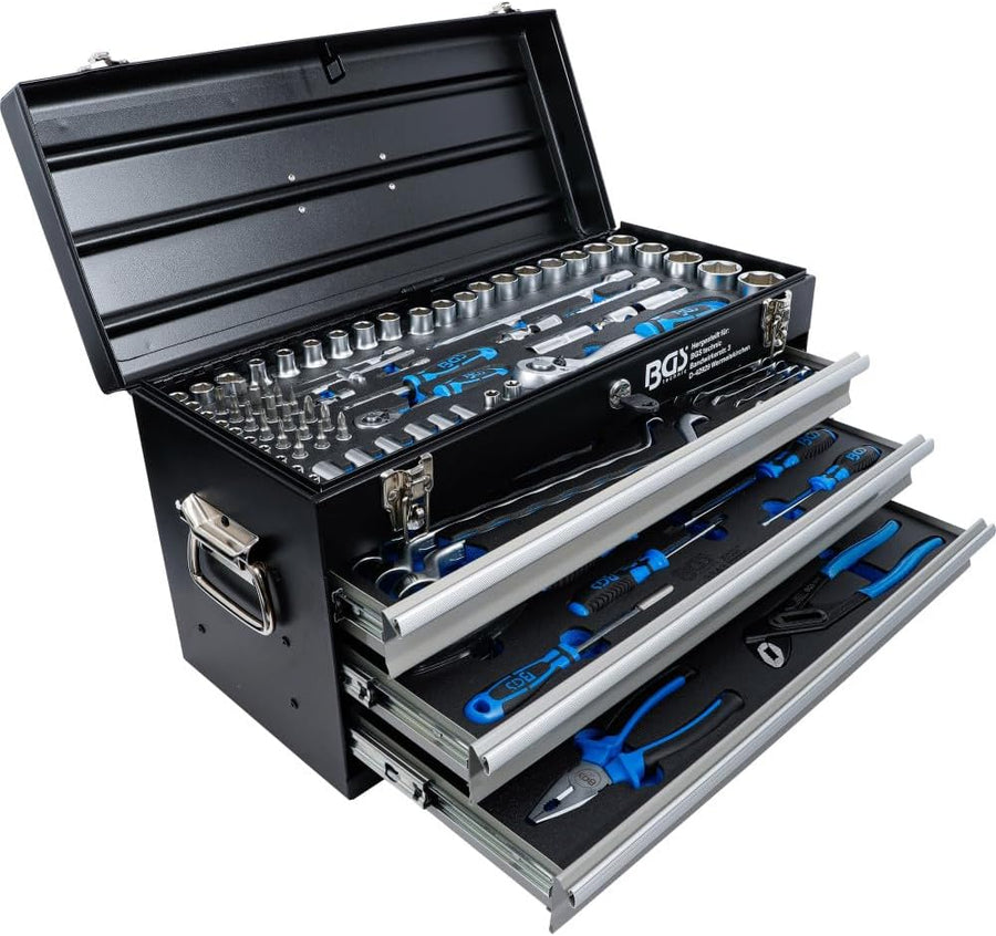BGS 3318 | Metall-Werkzeugkoffer | mit 143 Werkzeugen | 3 Schubladen | mit Werkzeug gefüllt Matall-W