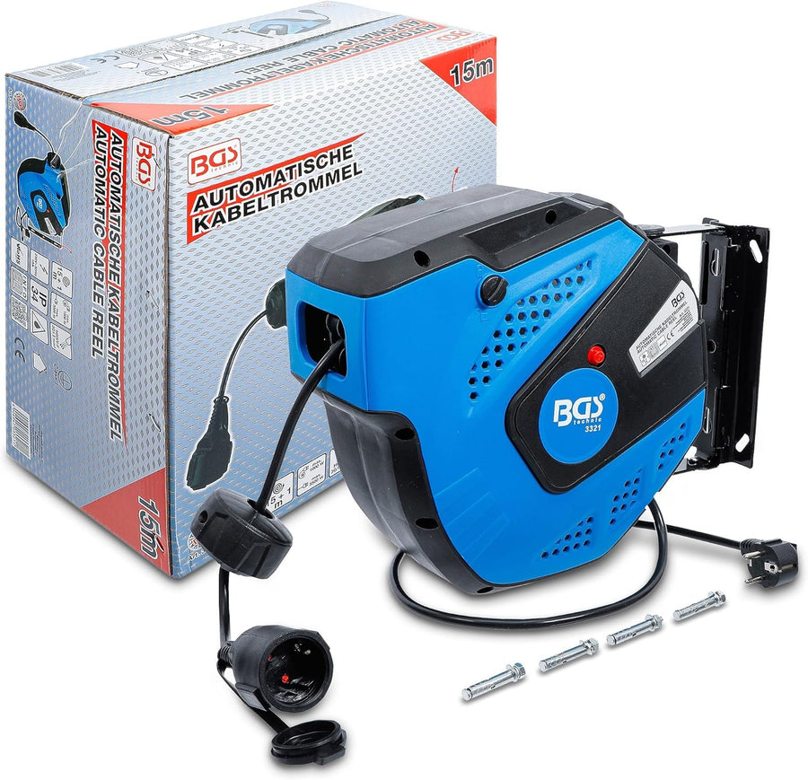 BGS 3321 | Automatische Kabeltrommel | 15 m + 1 m Zuleitung | 180° seitlich schwenkbar | inkl. Monta