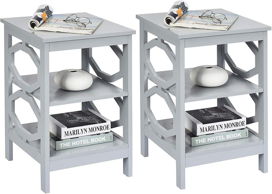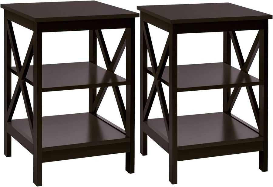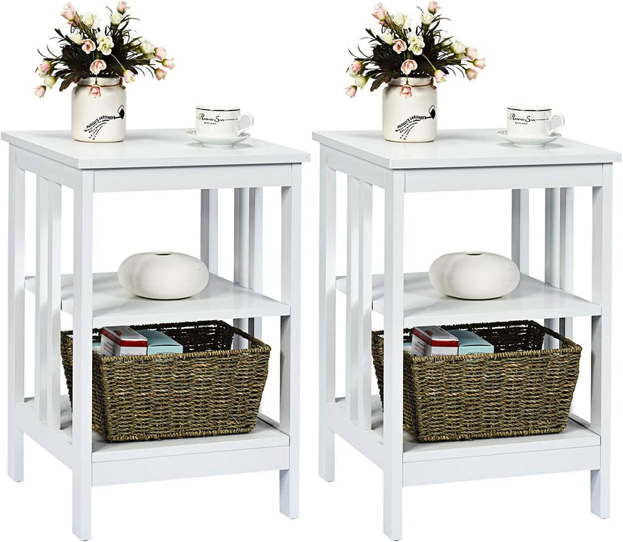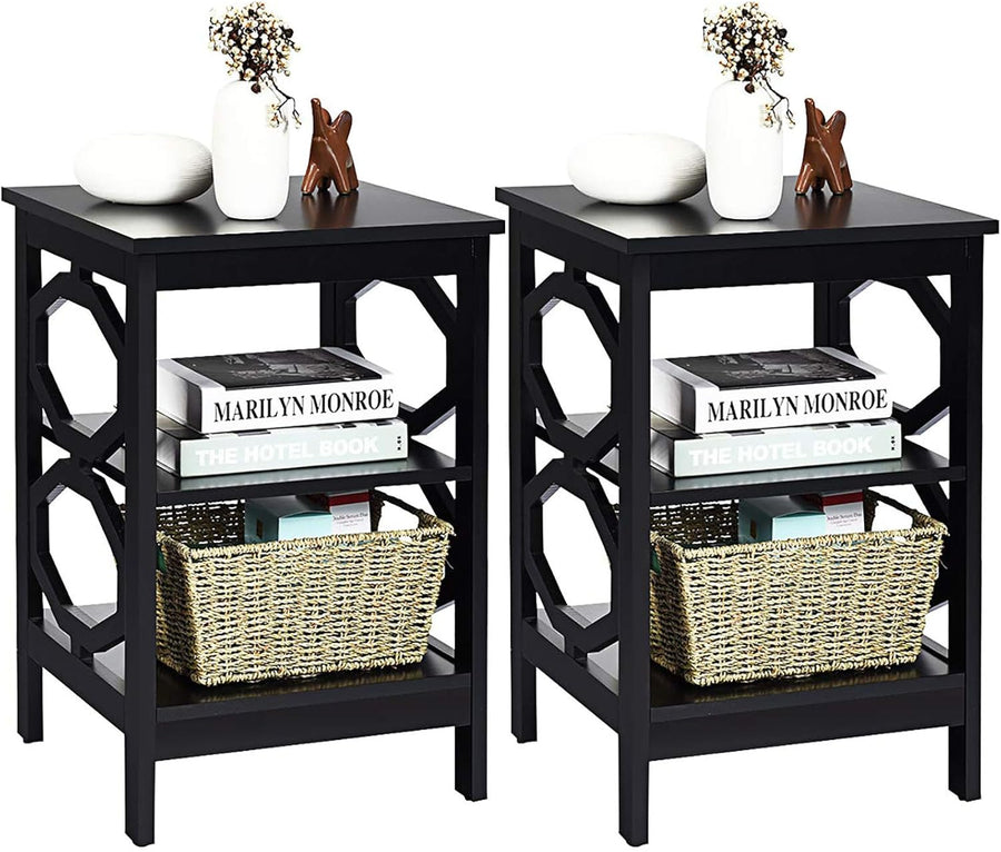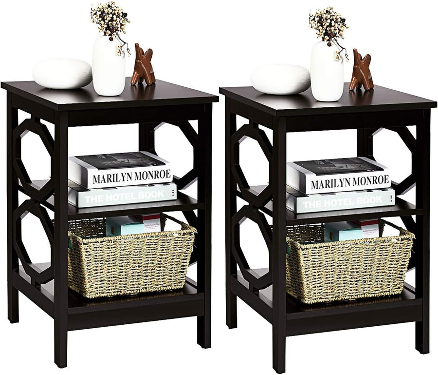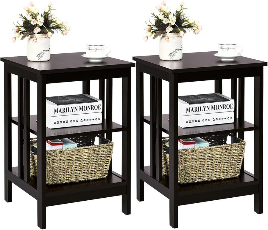 COSTWAY Nachttisch 3 Ebenen, 2er Set Beistelltisch Nachtschrank, Sofatisch Couchtisch für Schlafzimm
