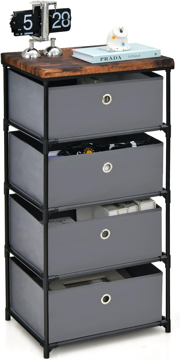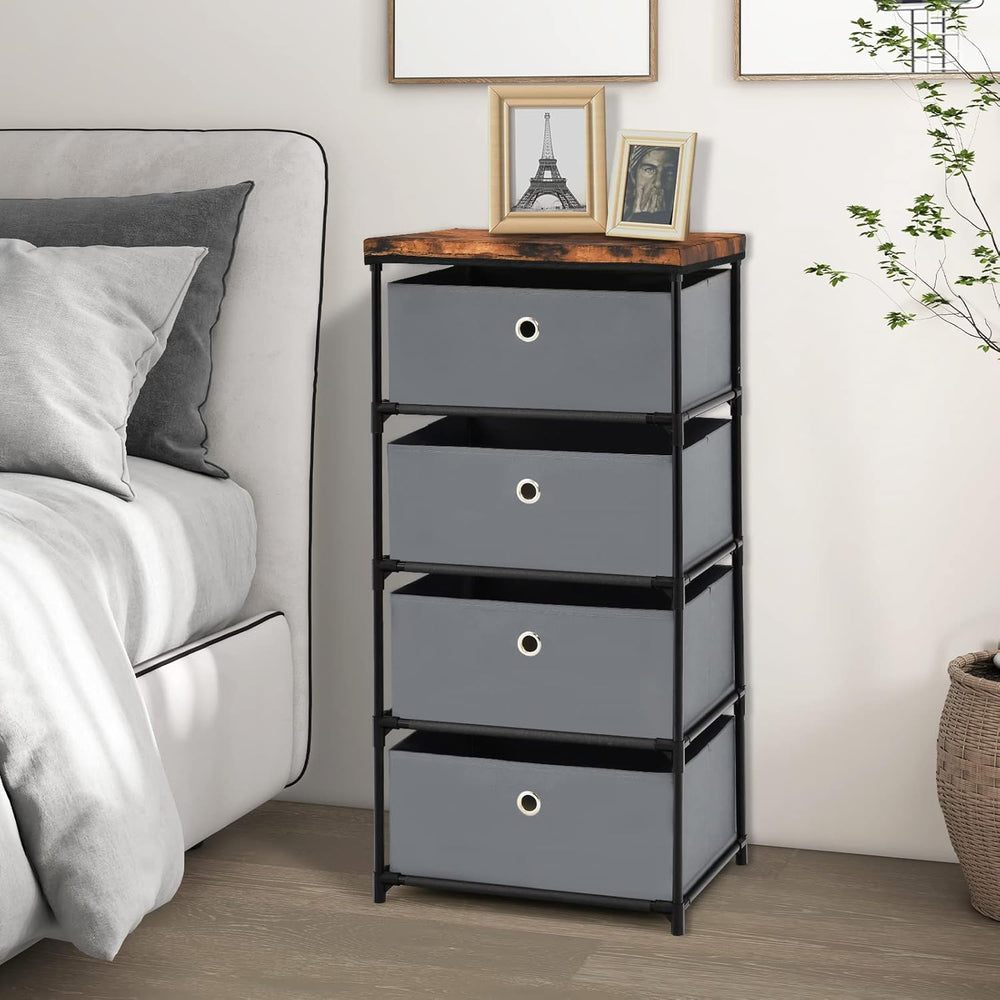 COSTWAY Nachttisch mit Stoffschubladen, Beistelltisch mit Metallrahmen, Aufbewahrungsschrank Stoffko