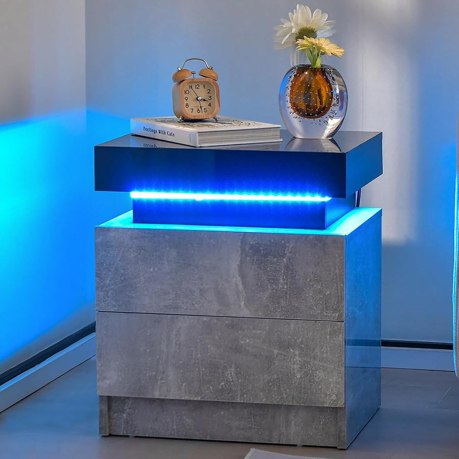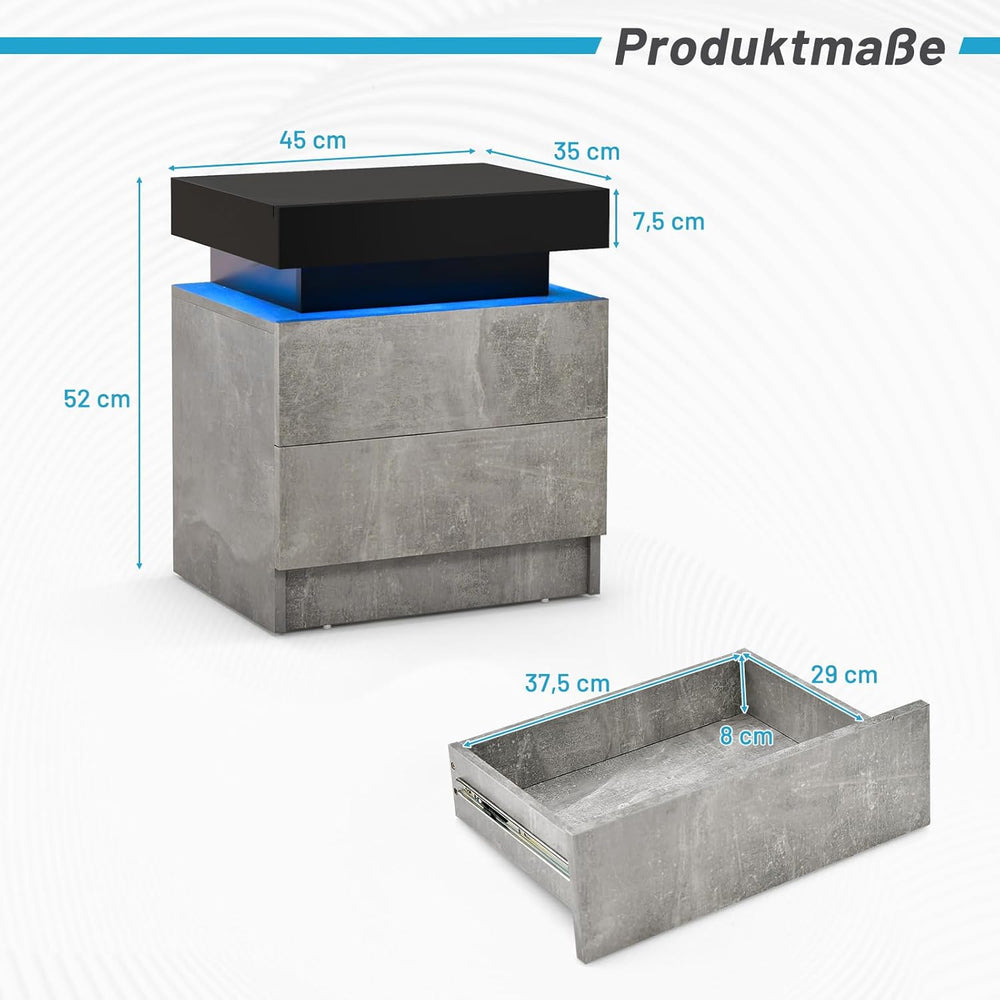 COSTWAY Nachttisch LED, Nachtschrank mit 2 Schubladen, Nachtkommode dynamisch & statisch beleuchtet,