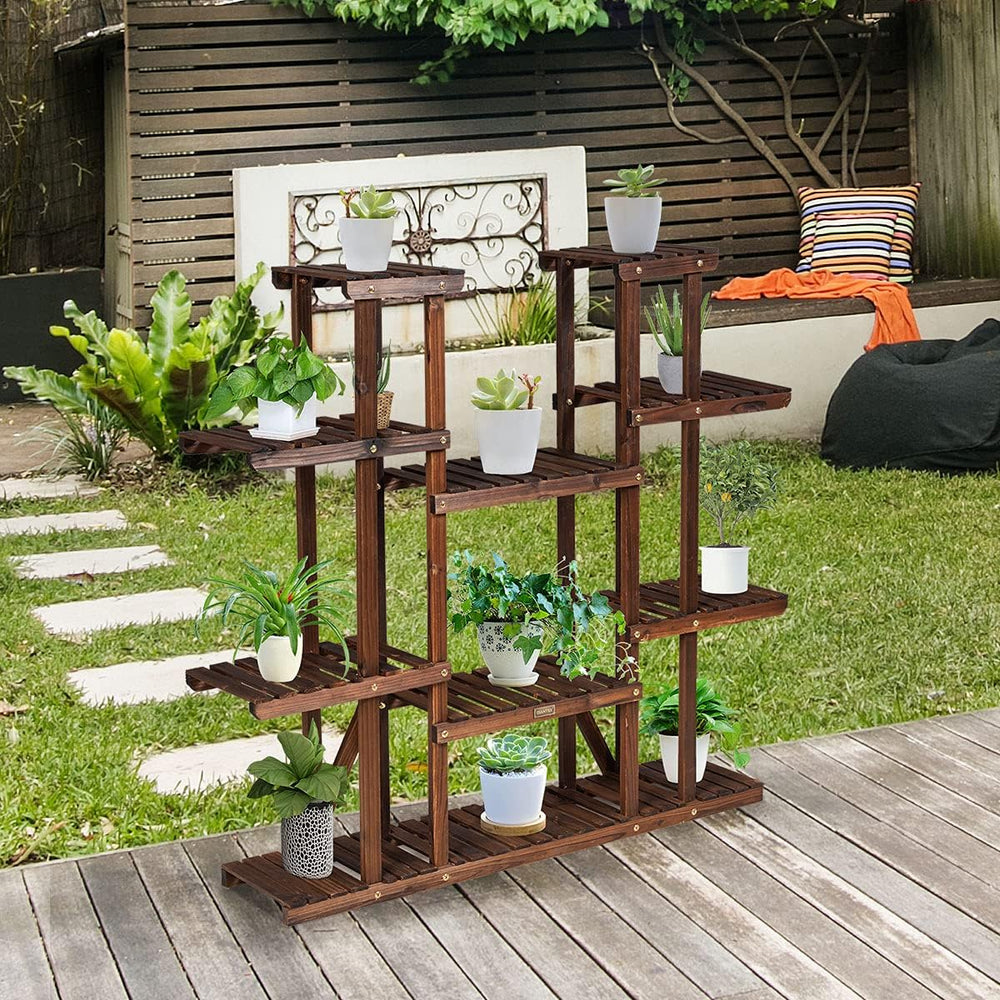 COSTWAY Pflanzenregal Blumenregal, Blumenständer Garten, Blumentreppe Holz, Pflanzentreppe mehrstöck