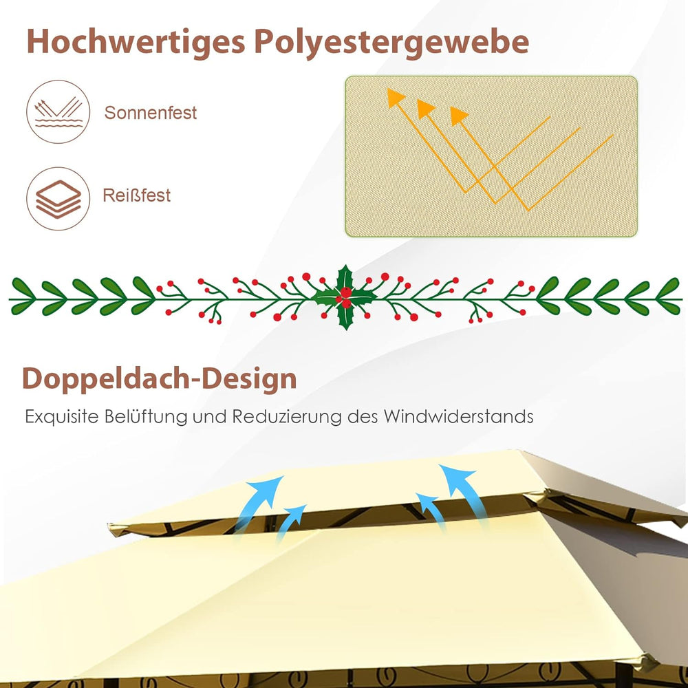 COSTWAY Pavillon Metall 3x4m, Gartenpavillon mit abnehmbaren 4 Seitenwänden, Gartenzelt Luxus, Festz