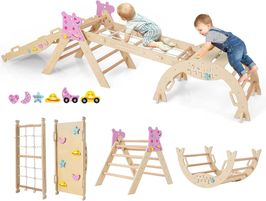 COSTWAY Kletterdreieck aus Holz, Klettergerüst für Kleinkinder ab 3 Jahren, zur Entwicklung grobmoto