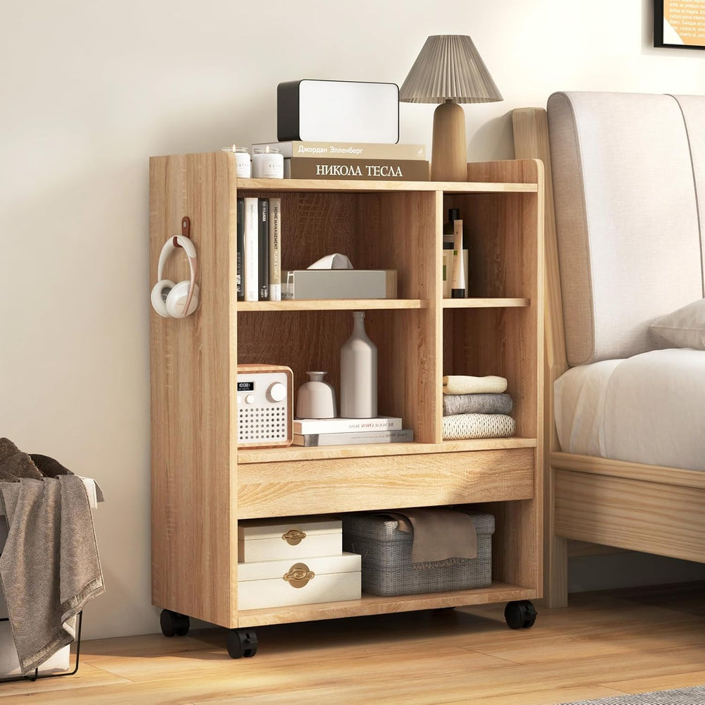 COSTWAY mobiler Rollcontainer mit Schublade, Büroschrank mit verstellbaren Regalen, offenen Fächern