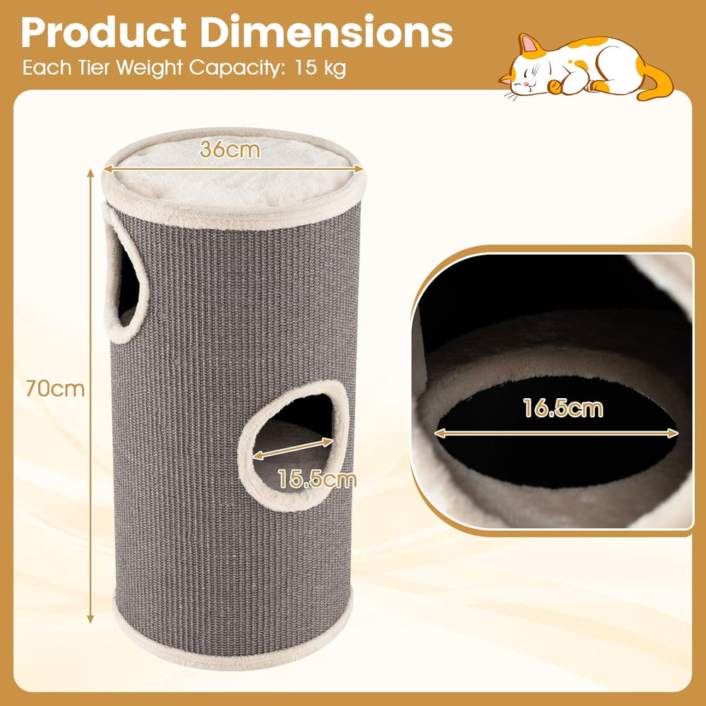 COSTWAY Kratztonne, Ø 36 cm, 70 cm hoch, Katzentonne mit Sisal-Kratzbrett, 3 Katzenhöhlen, Plüschbet