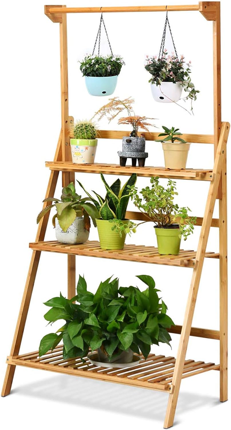 COSTWAY Pflanzenregal mit höhenverstellbarer Hängestange, Pflanzenleiter mit 3 Ebenen, klappbares Bl