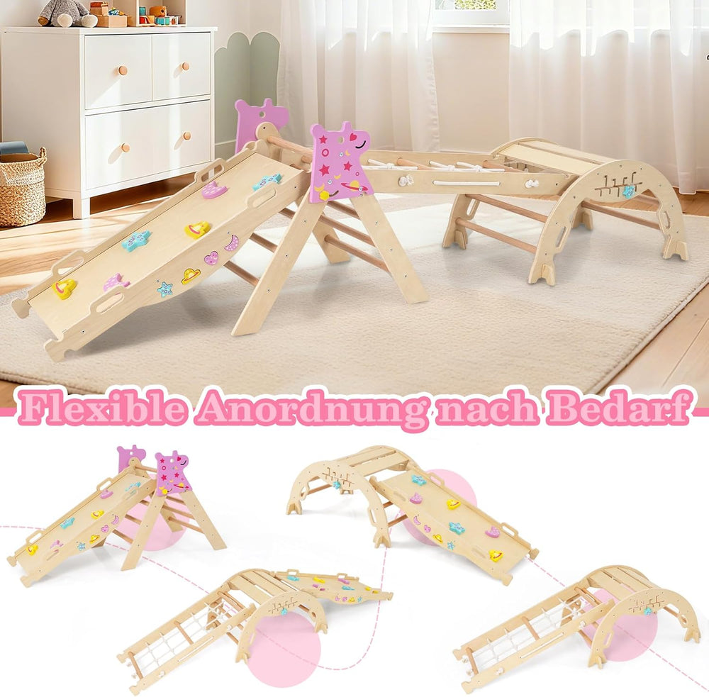 COSTWAY Klettergerüst Indoor 4er Set, klappabres Kletterdreieck mit Rutsche, Kletterbogen, Netz, ink