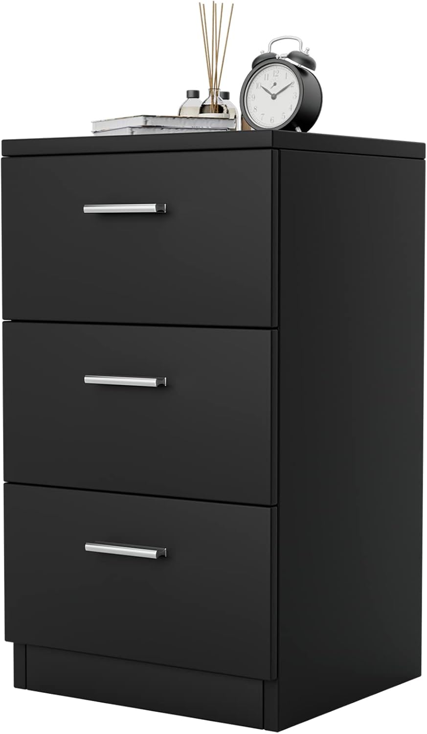 COSTWAY Nachttisch mit 3 Schubladen, Nachtschrank für Boxspringbett, Beistelltisch, Nachtkommode für