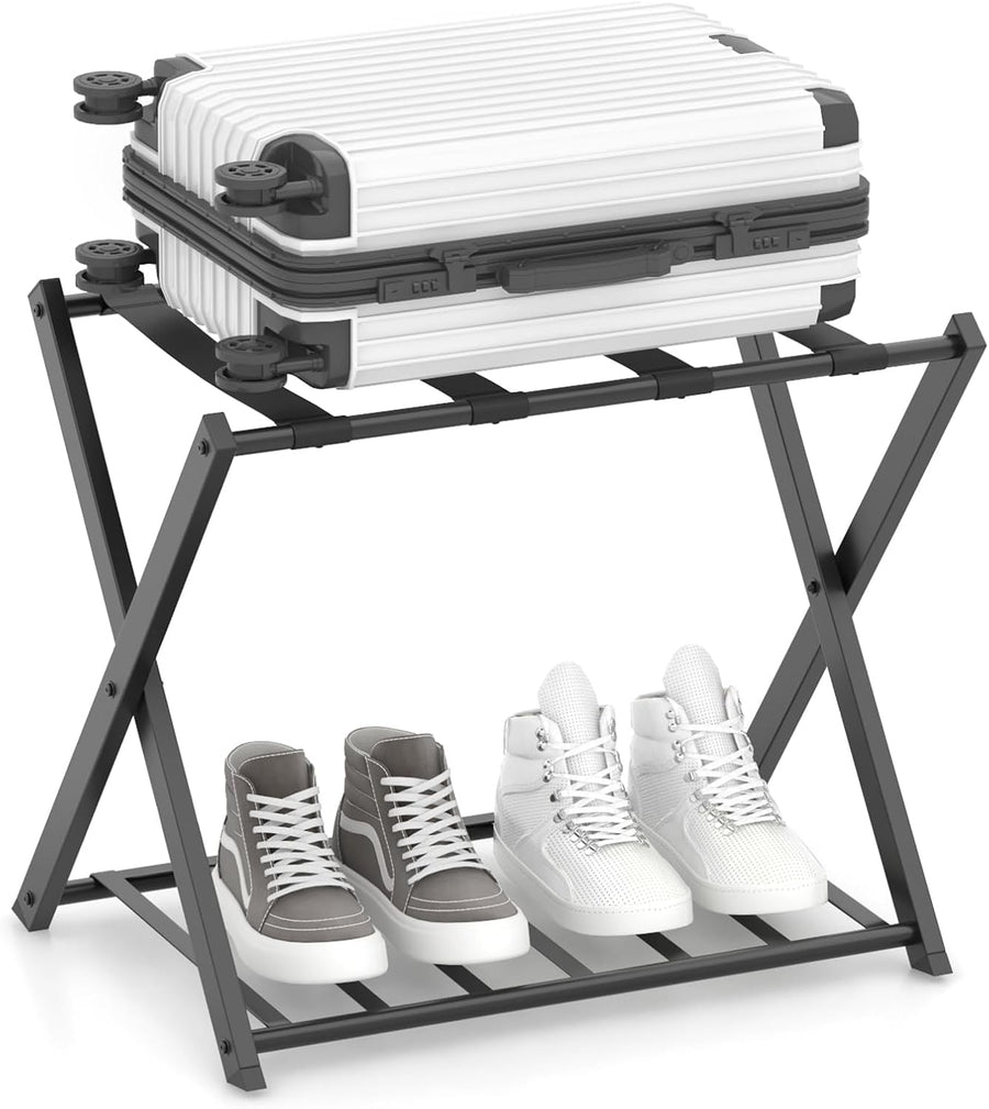 COSTWAY Kofferständer klappbar, Gepäckablage mit 2-Stöckiger Design, Kofferbock Gepäckständer Metall