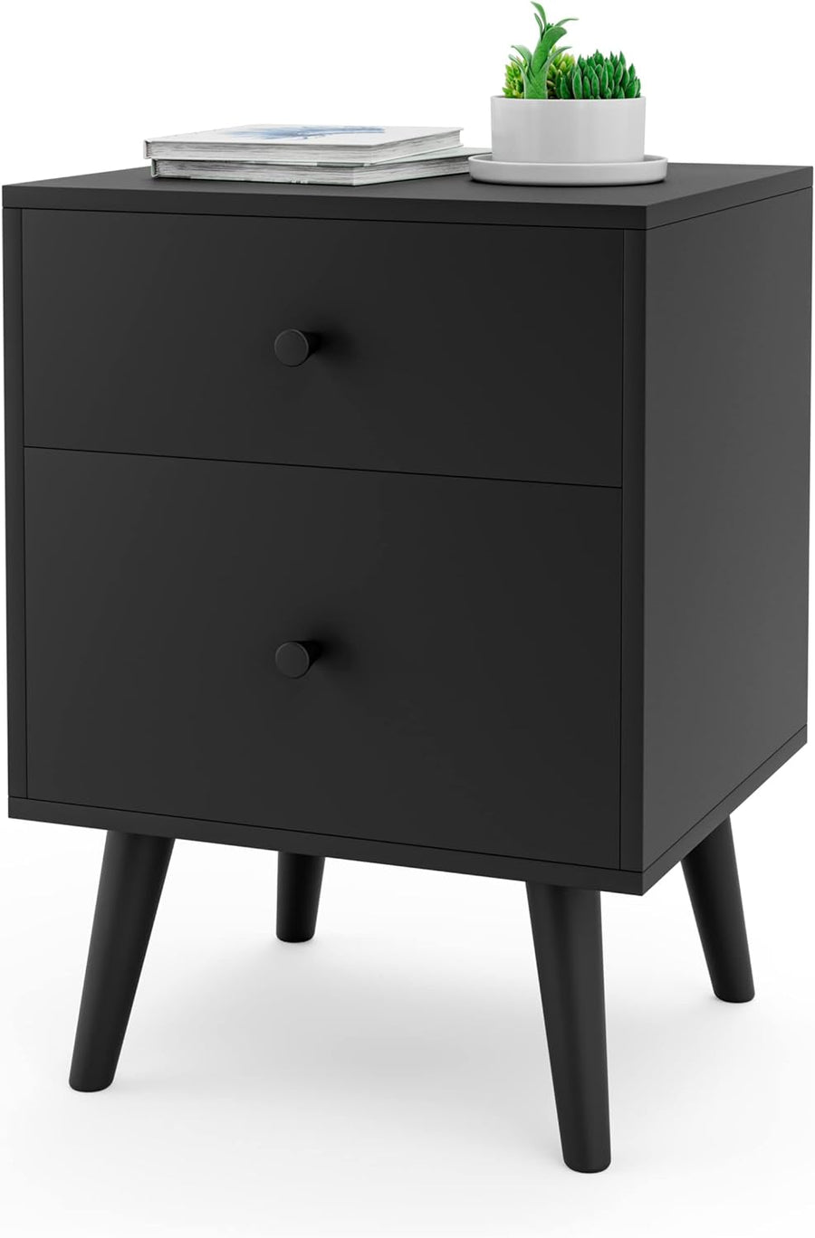 COSTWAY Nachttisch Holz, Kleiner Beistelltisch mit 2 Schubladen, Nachtkonsole modern, Nachtkommode,