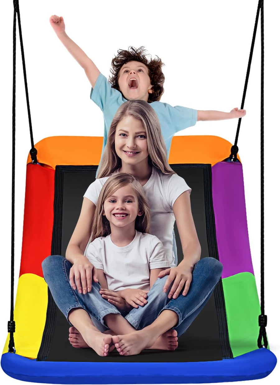 COSTWAY Nestschaukel verkrümmt bis 300kg belastbar, 100-180cm verstellbares Seil, Hängeschaukel Baum