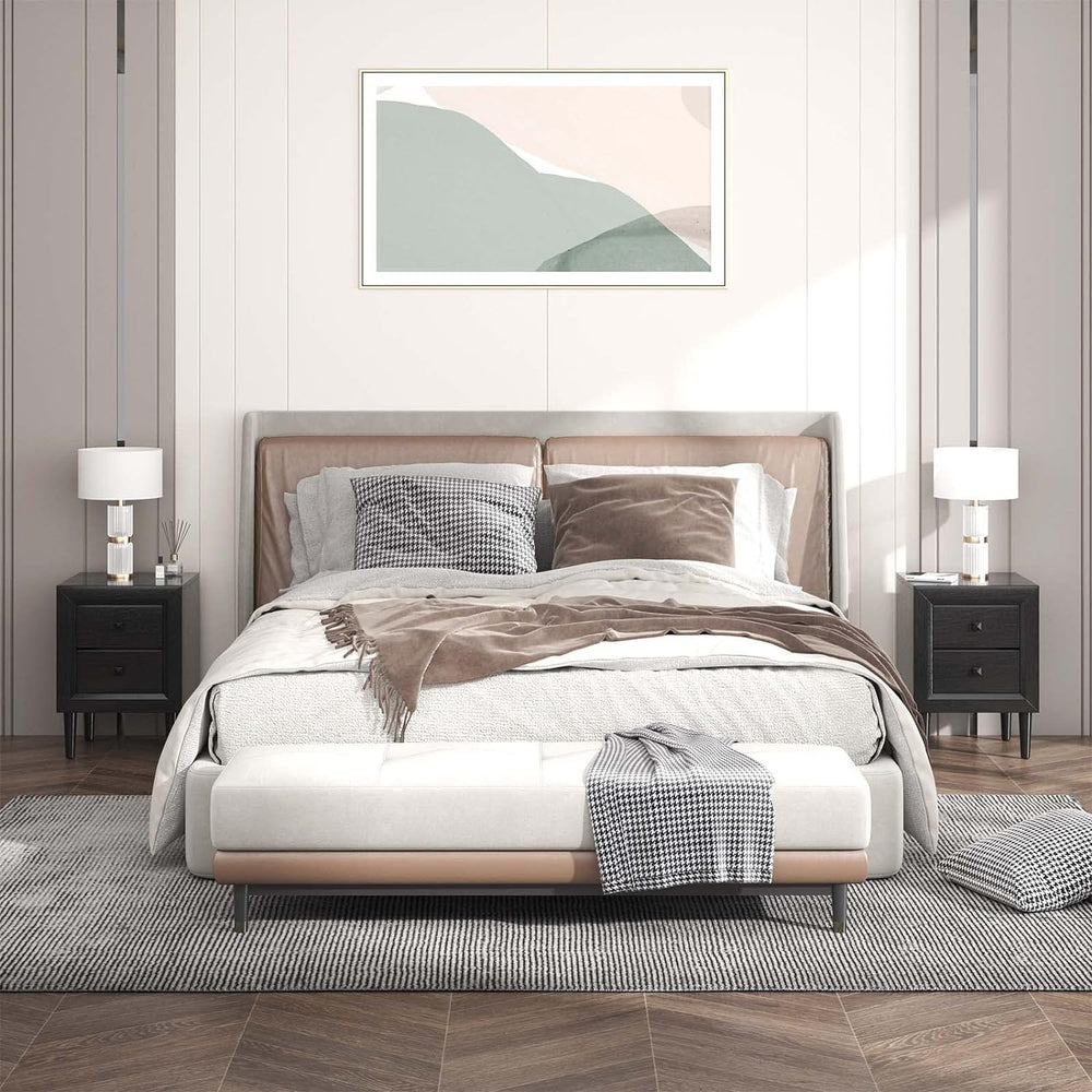 COSTWAY Nachttisch mit 2 Schubladen, Beistelltisch aus Holz, Nachtkommode Boxspringbett, Nachtschran