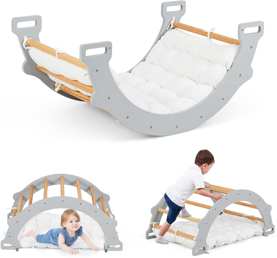 COSTWAY Kletterbogen mit weichem Kissen, Kletterdreieck zum Wippen, Klettern und Krabbeln, Indoor Kl