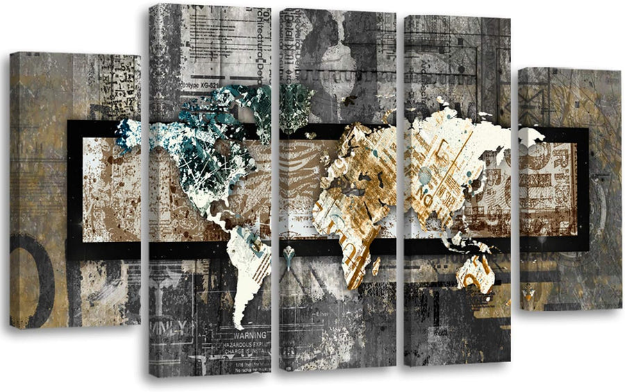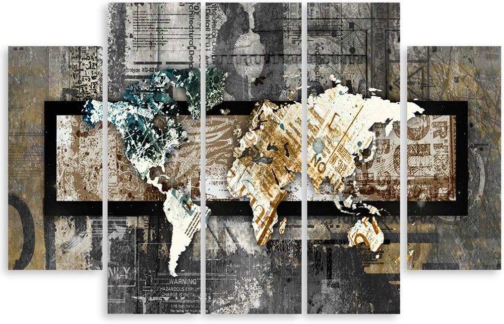 Feeby Bilder 5 Teile Weltkarte 200x100 cm Typ B Wohnzimmer Schlafzimmer Büro Flur Küche Wandbilder M