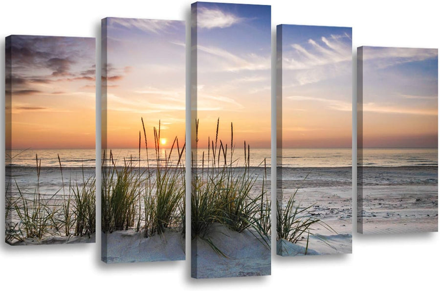 Feeby Bilder 5 Teile XXL Landschaft Grass Strand Typ A 300x140 cm Wohnzimmer Schlafzimmer Büro Flur