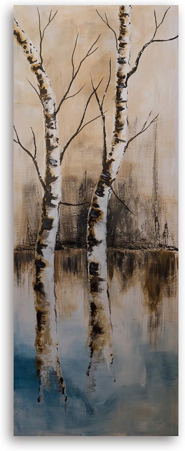 Feeby Bilder Abstrakt 300x140 cm - Leinwandbild 5 Teilig XXL Kunstdruck Baum Wasser blau Leinwandbil