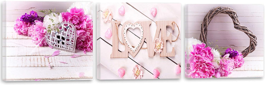 Feeby Bilder 3 Teile Rosa Herz Blumen 120x40 cm Wohnzimmer Schlafzimmer Büro Flur Küche Wandbilder M