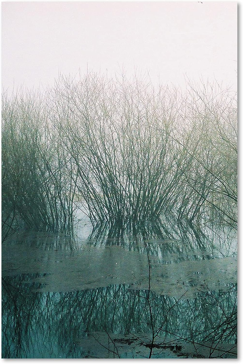 Feeby Bild Wiese Nebel Landschaft XXL 80x120 cm 1Teilig Modern Vlies Bilder Wandbilder Leinwandbilde