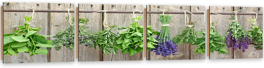 Feeby Bilder 4 Teile Kräuter Pflanzen 80x20 cm Wohnzimmer Schlafzimmer Büro Flur Küche Wandbilder Mo