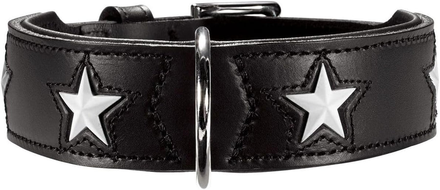 HUNTER MAGIC STAR Hundehalsband, mit Sternen, Leder, weich, 37 (XS-S), schwarz schwarz 37 (XS-S), sc