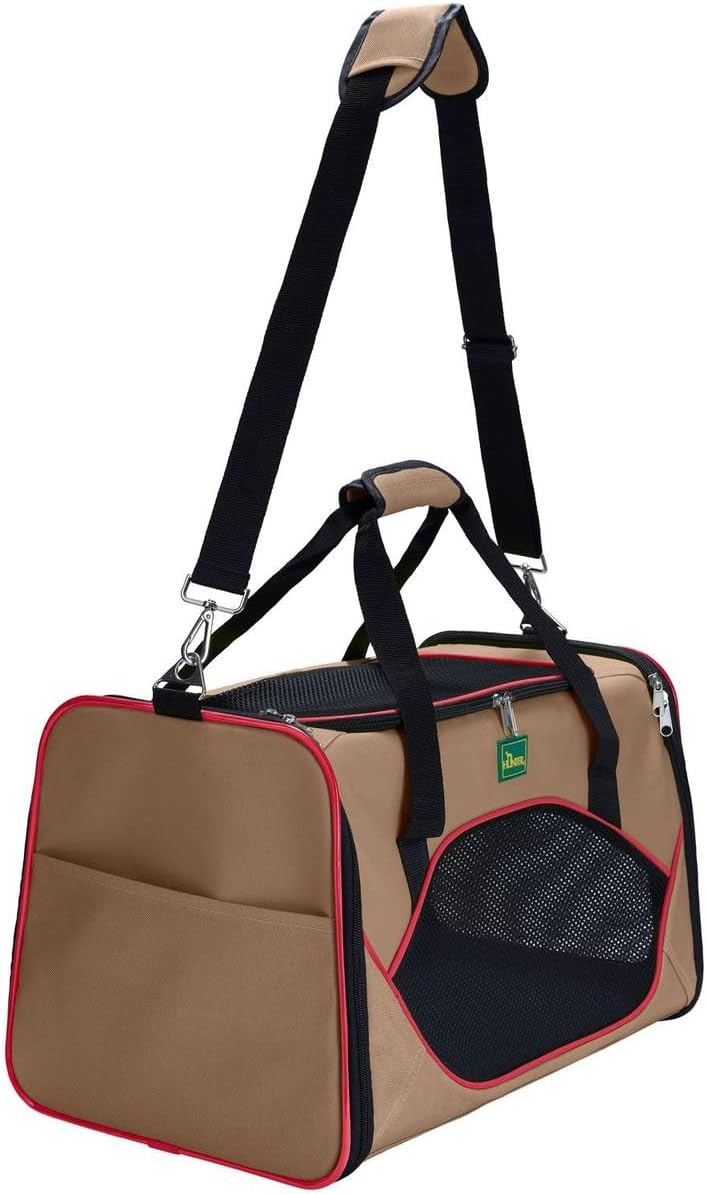 HUNTER KANSAS Tragetasche für Hunde und Katzen, zusammenfaltbar, 50 x 30 x 30 cm, beige/rot beige/ r